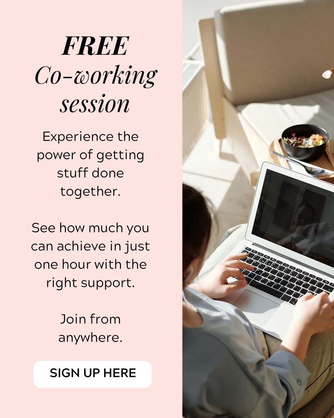 Get more done in 1hour than you thought possible. Work, life admin, that “I’ll do it later” list – tick it off with the boost of friendly accountability.